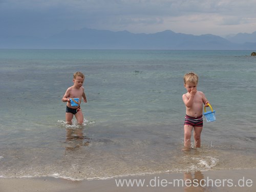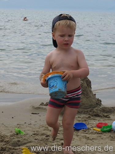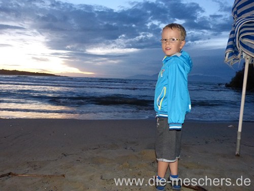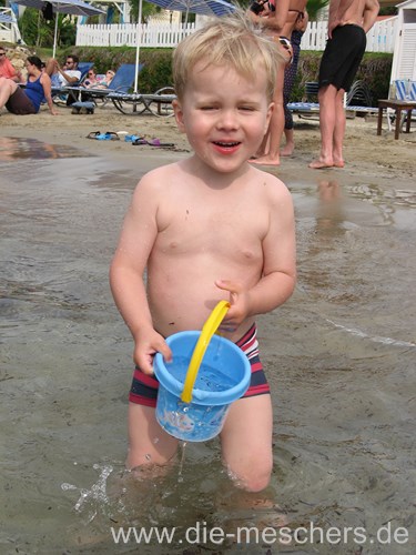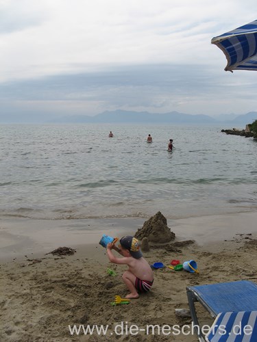 Der erste Tag war bewölkt, aber trotzdem sehr warm. So haben wir beschlossen das gleich auszunutzen und das Meer zu erkunden. So kann man wenigstens im Sand buddeln, ohne dass Mama ständig mit der Sonnencreme nervt.