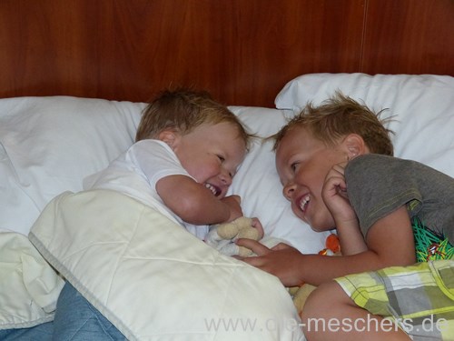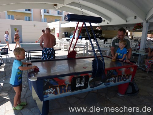 Am letzten Tag durften die beiden dann auch endlich Airhockey spielen. Den ganzen Urlaub wurden sie immer nur vertröstet.